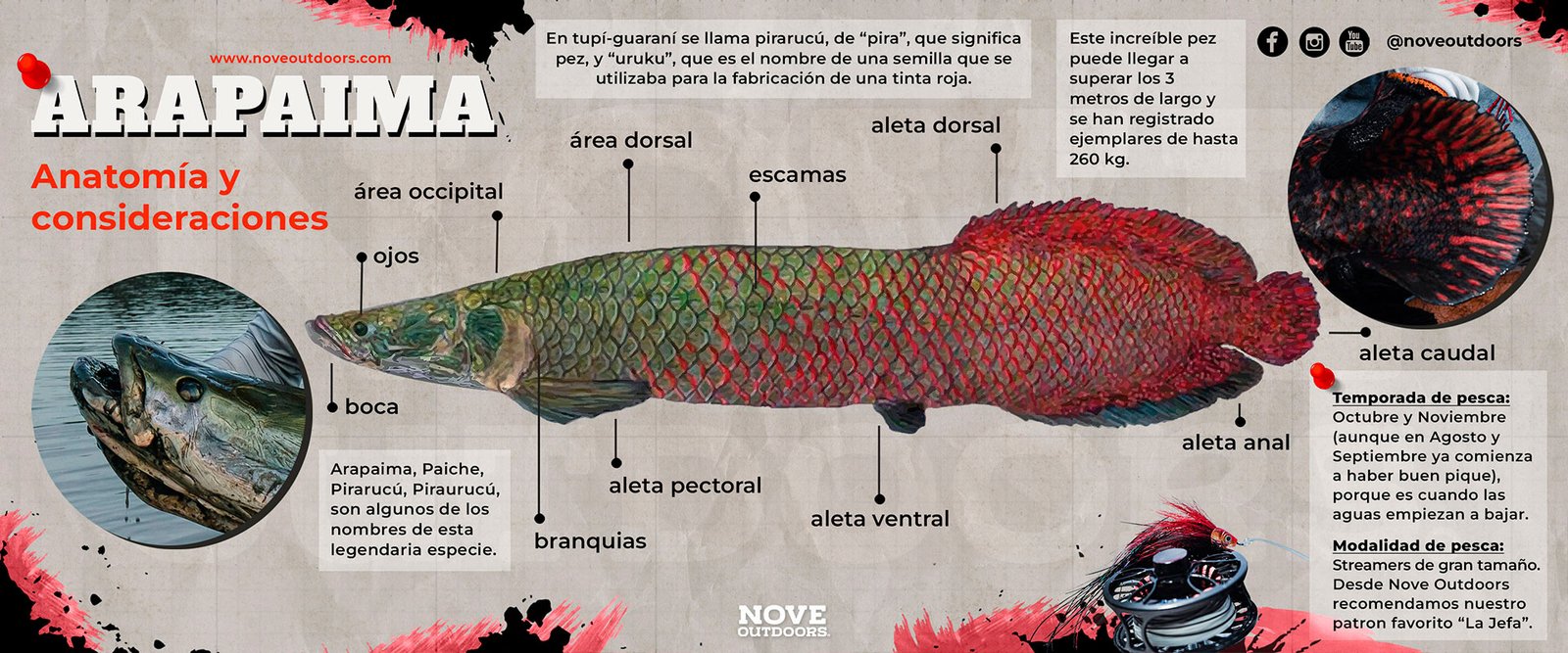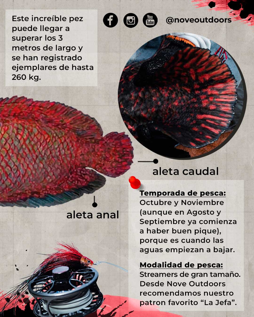 De hecho, durante el viaje de pesca de Nove Outdoors en busca de esta mítica especie, el lugar elegido para su captura fue “Pirarucu Fly Fishing”, ubicada en el Amazonas Brasileño, específicamente en la reserva de desenvolvimiento sustentable Mamirauá, donde habita la mayor población de arapaimas salvajes del mundo.